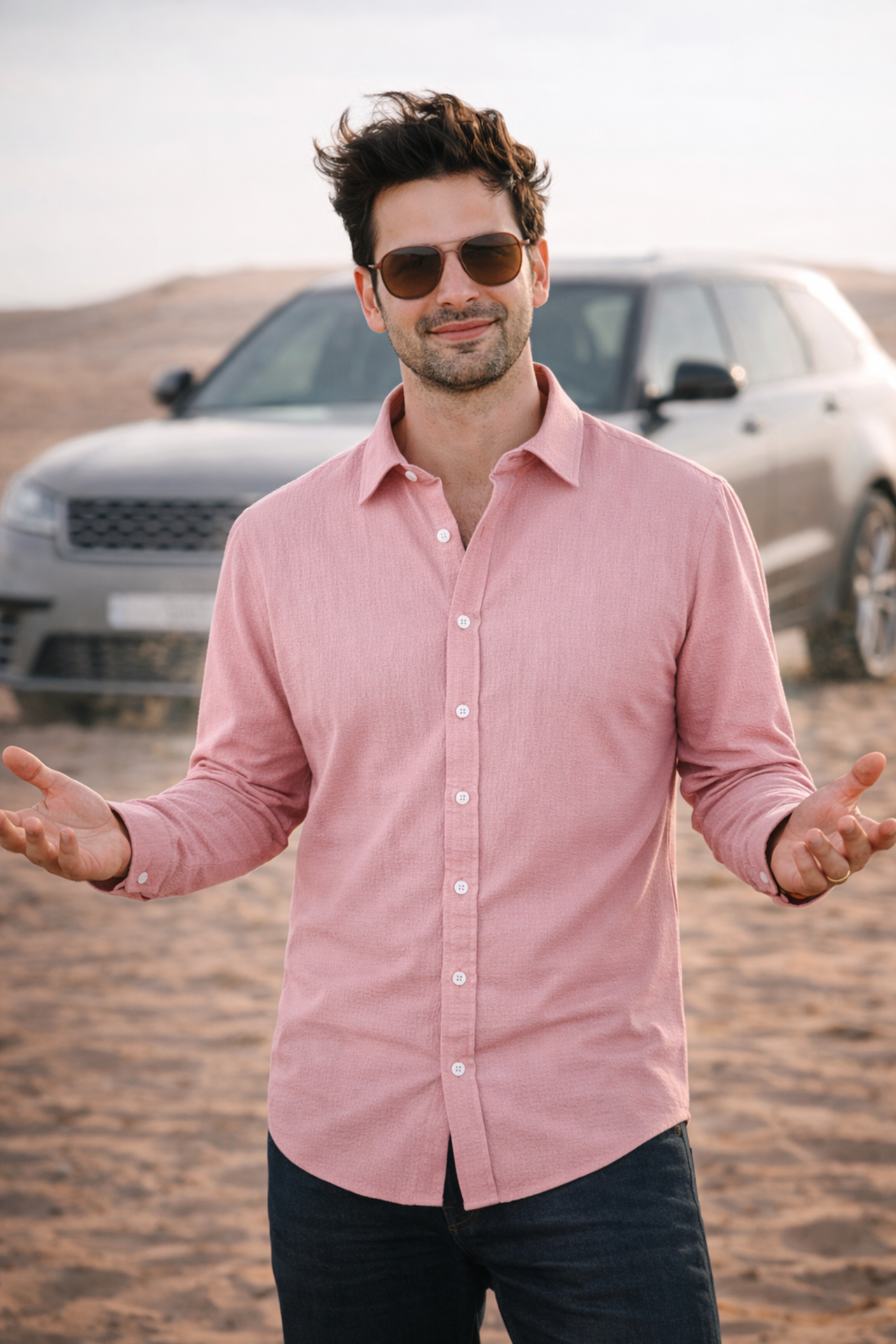 Blush Pink Premium Textured Shirt – Soft & Breathable Summer Fit|H-640