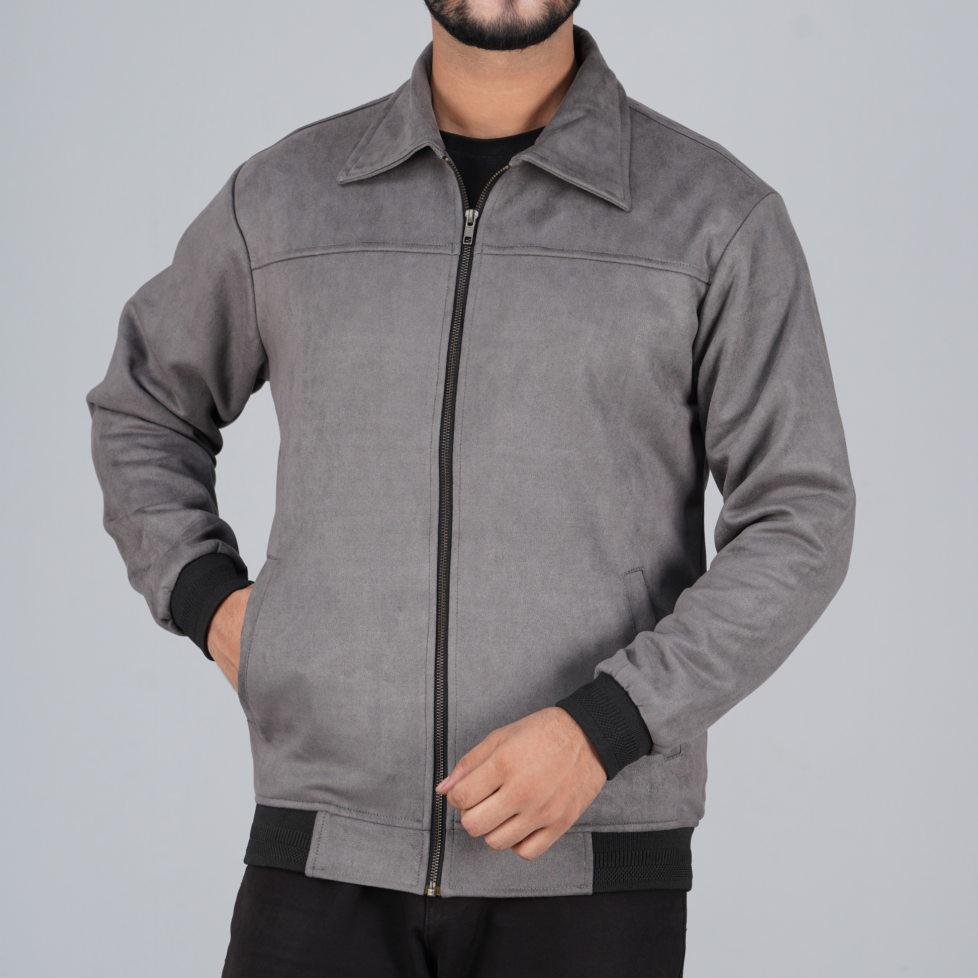 Classic Grey Zip-Up Collared Jacket | MP-820