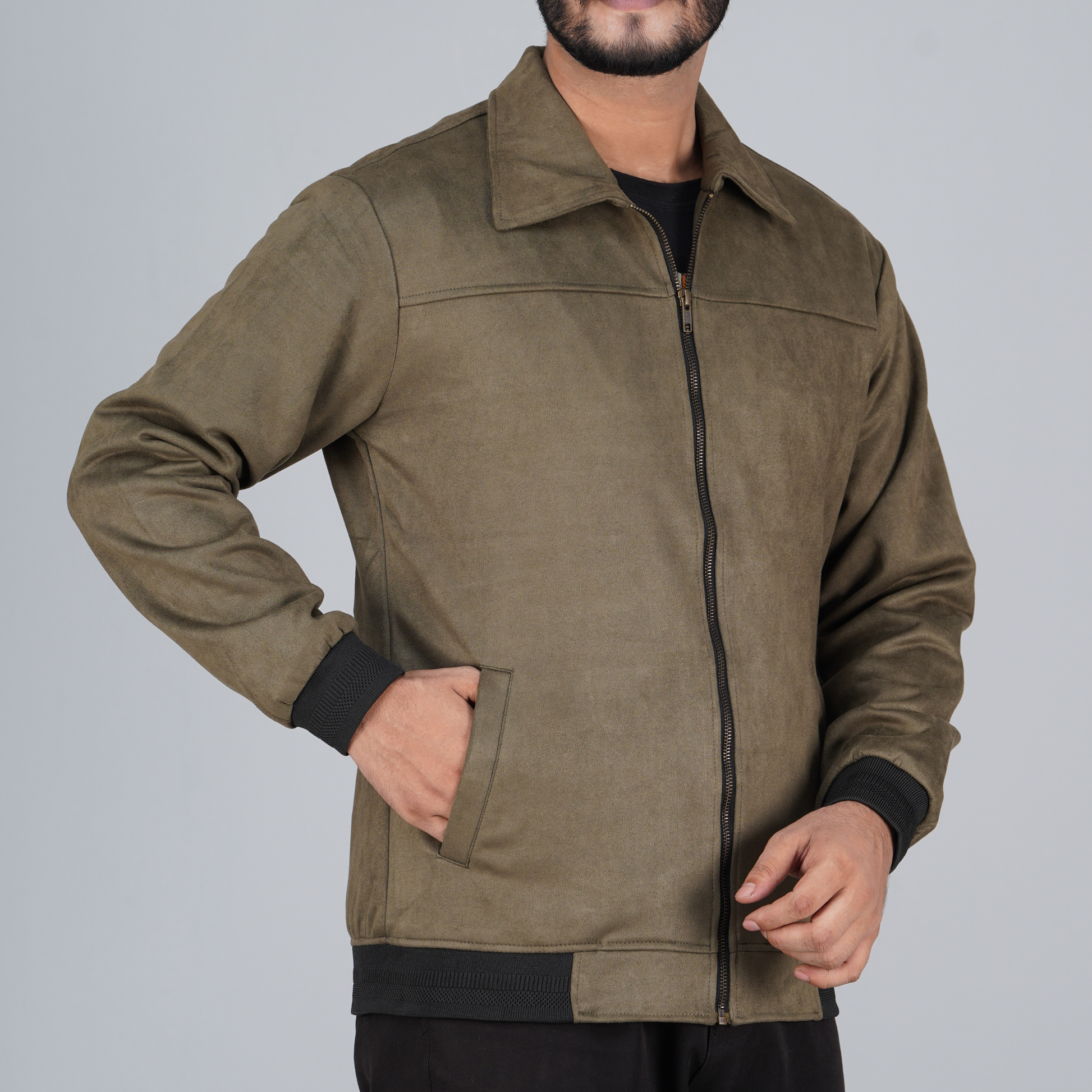 Classic Olive Zip-Up Collared Jacket | MP-830